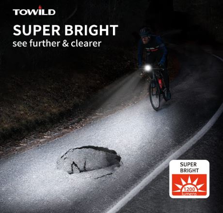 TOWILD CL1200 Garmin/GoPro Mount kompatibel 1200 4000mAh batteri Vandtæt cykellys til pendlere