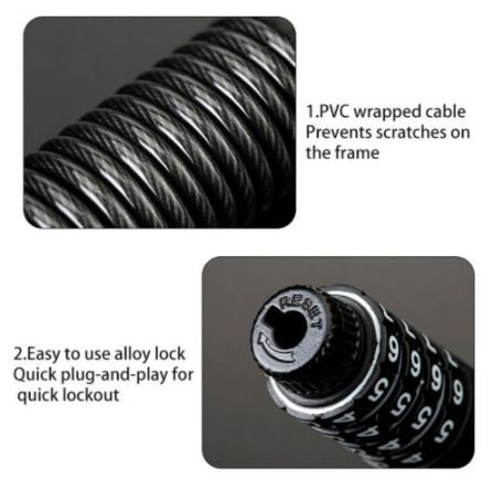 ROCKBROS T530 mini hjelmlås med kabel og kombinationslås