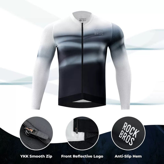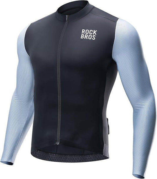 ROCKBROS cykeltrøje til mænd, langærmet cykeltrøje, cykeltrøje til cykling, cykling, MTB, landevejscykel, cykeltøj, åndbar, hurtigtørrende