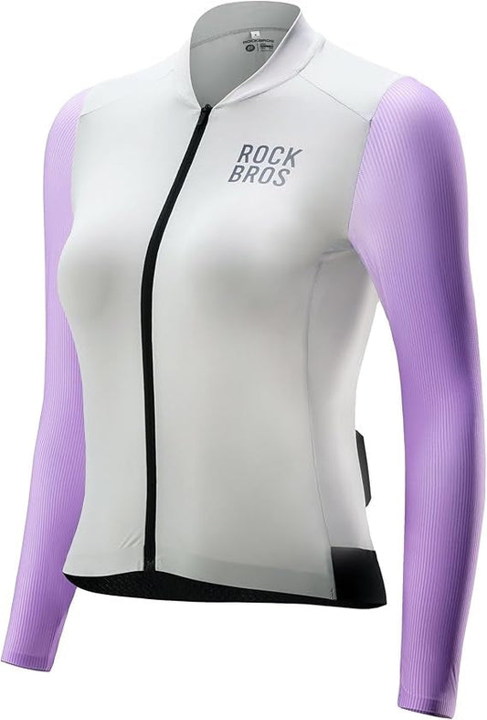 ROCKBROS cykeltrøje dame langærmet cykeltrøje sommer cykeljakke cykeltrøje landevejscykeltrøje med 3 baglommer MTB cykeltøj åndbart