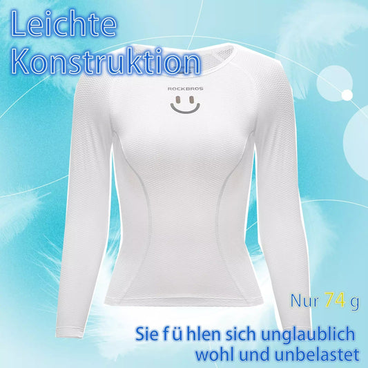 ROCKBROS langærmet skjorte dame cykeltrøje, åndbar, hurtigtørrende, cykeltøj, dame, velegnet til løb, tennis, vandreture, basic sports undertrøje