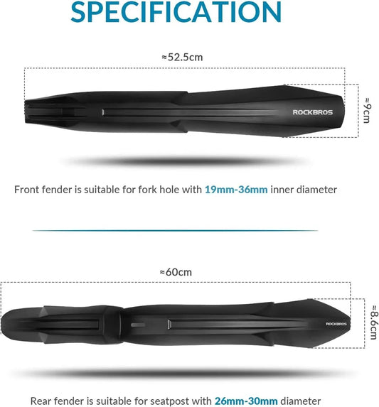 ROCKBROS cykelskærmsæt foran + bageste cykelskærm til 22-24 tommer MTB