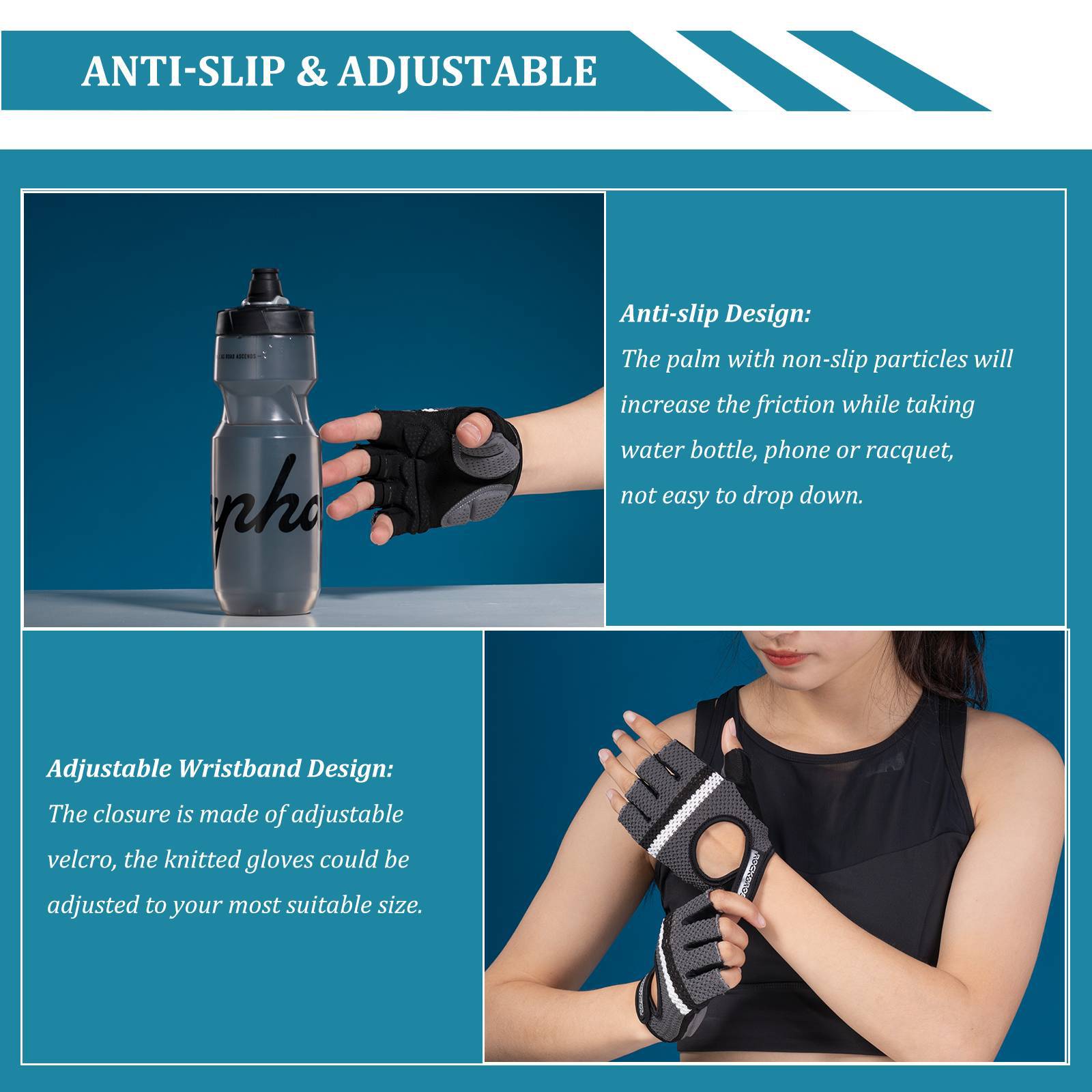 Cykelhandsker til halve fingre, universelle træningshandsker, ROCKBROS