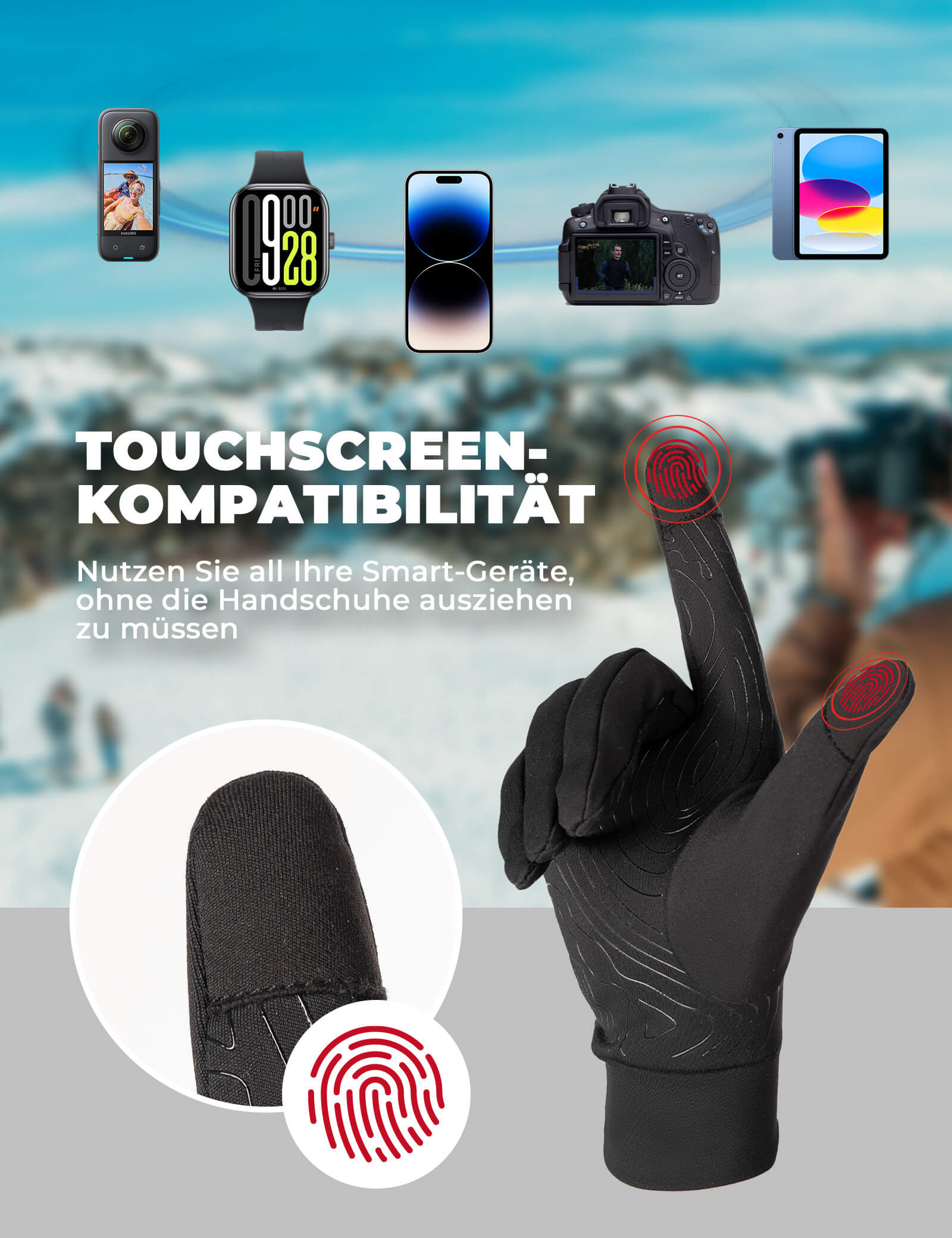 Specielle fingerspidser giver dig mulighed for at betjene smartphones og GPS-enheder uden at tage dine handsker af. Ideel til navigation og musikstyring under cykling.