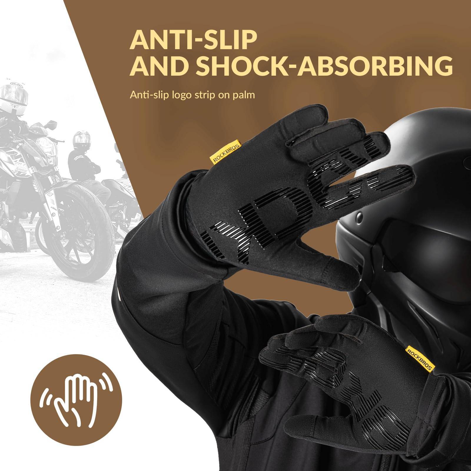Oplev ultimativ komfort under cykling, løb, klatring og motorcykelkørsel med ROCKBROS cykelhandsker. De er lavet af skridsikkert materiale og tilbyder vindbeskyttelse og holder dine hænder varme. De er kompatible med touchscreen og fås i forskellige størrelser til mænd og kvinder – perfekte til forår og efterår.