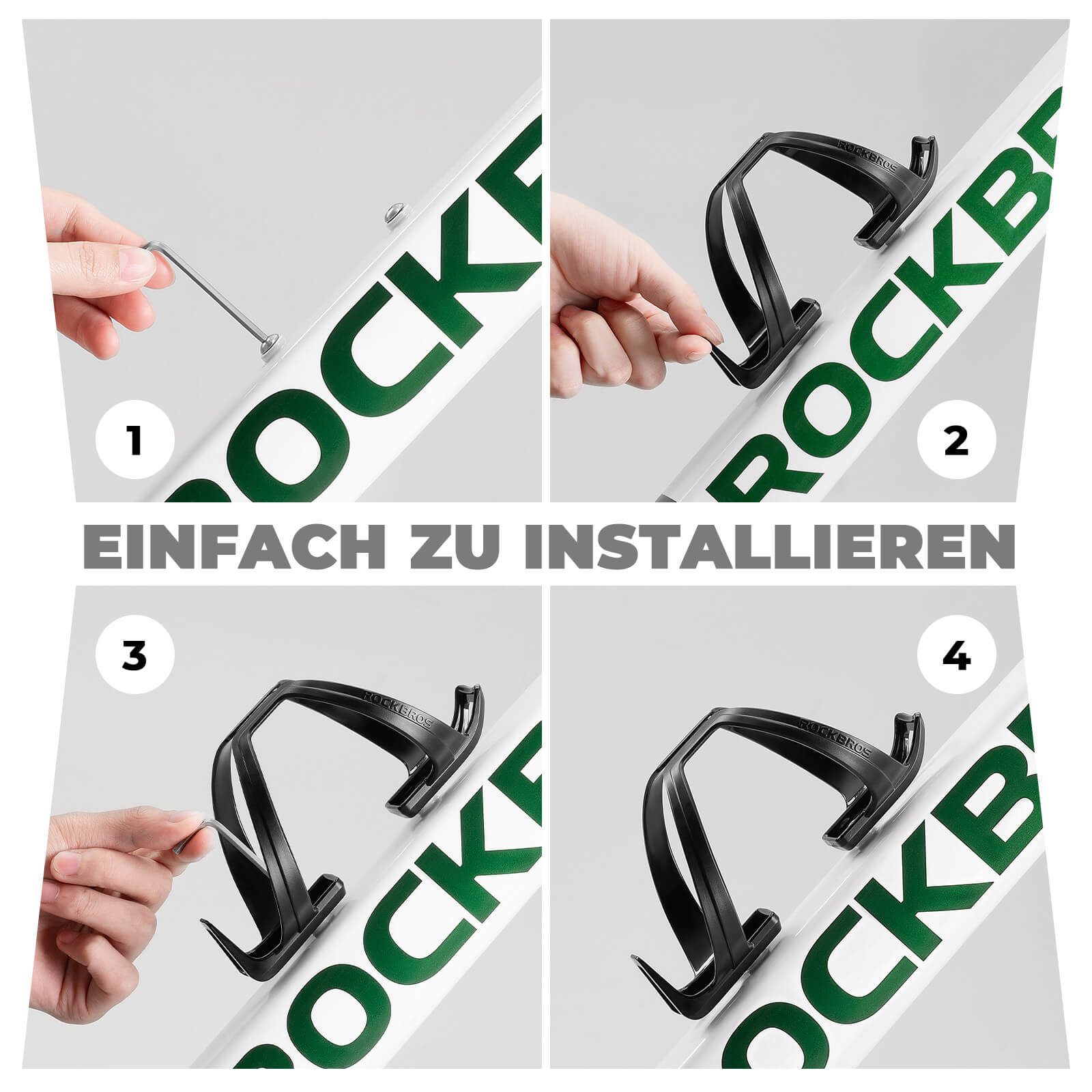 Uanset om det er en vandflaske, en energidåse eller en reparationsspray, holder den brede U-form sikkert alt. Det ergonomiske design muliggør nem og hurtig indsættelse af flaske i ethvert terræn.